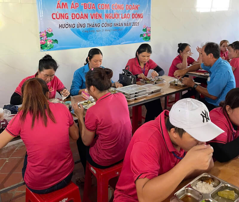 Chương trình “Ấm áp Bữa cơm Công đoàn” được Ban Chấp hành Công đoàn cơ sở phối hợp với Ban Giám đốc công ty tổ chức, ngoài suất ăn của công ty, Công đoàn hỗ tăng thêm 12.000 đồng/ suất nhằm tăng cường dinh dưỡng cho bữa ăn của người lao động.