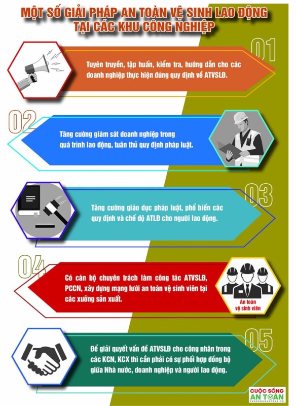 [Infographics] Một số giải pháp an toàn vệ sinh lao động tại các khu công nghiệp